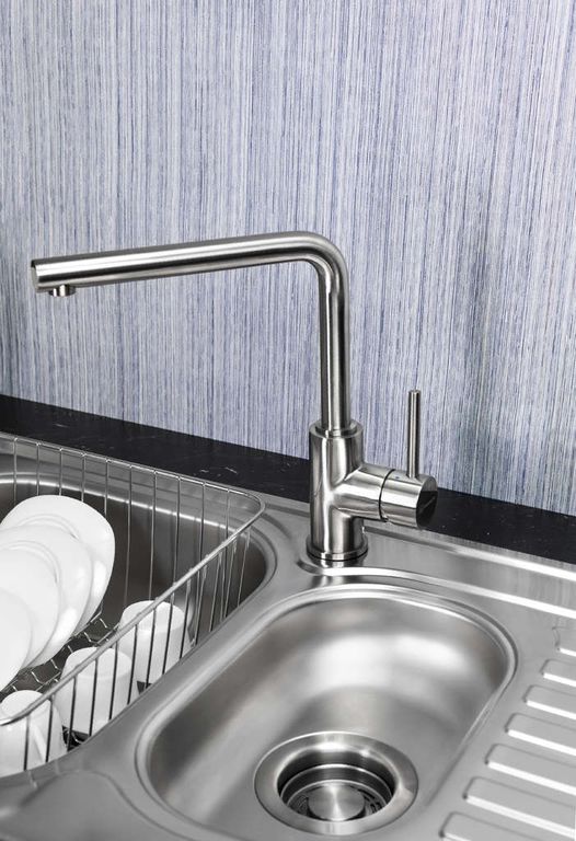 Практичный смеситель для кухни Omoikiri NAKAGAWA с высоким поворотным изливом. Современная модель оснащена керамическим картриджем и пластиковым аэратором, на котором не появляется ржавчина и известковый налет.