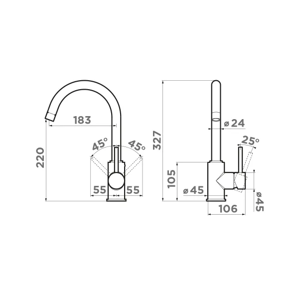 Практичный однорычажный смеситель выполнен в современном стиле и снабжен высоким поворотным изливом.