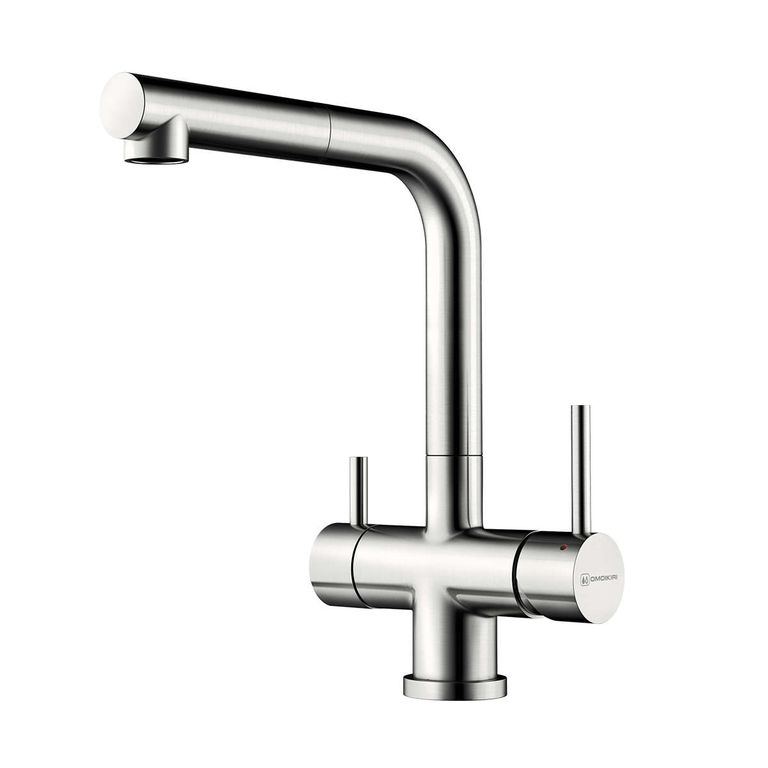 Смеситель для кухни Omoikiri TAKAMATSU-S-BN с высоким изливом для максимально комфортного использования. Модель премиум класса 3 в 1: функция подачи холодной/горячей воды и возможность подключения питьевой воды.