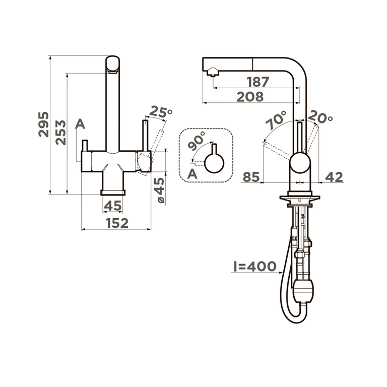 Наличие выдвижного излива 400 мм позволяет направлять струю воды в нужном направлении.