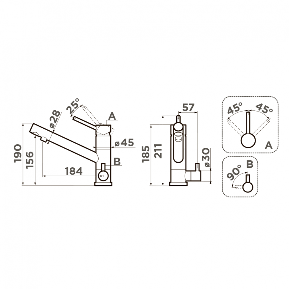 Высота смесителя 211 мм