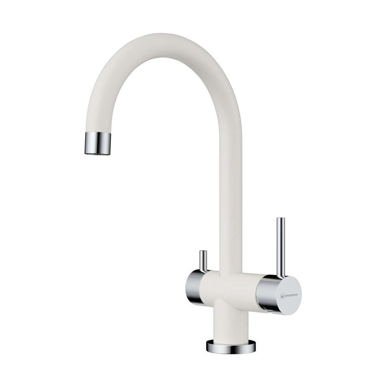 Смеситель для кухни с высоким изливом для питьевой воды. Практичный модельный ряд 3 в 1: функция подачи холодной/горячей воды и возможность подключения фильтрованной воды. Вода, проходя через фильтры, подается по отдельной изливу трубочке в кран и не смешивается с водопроводной водой. Изделие модельного ряда «Comfort» оснащен долговечным керамическим картриджем и аэратором из пластика, на котором не появится известковый налет и ржавчина.