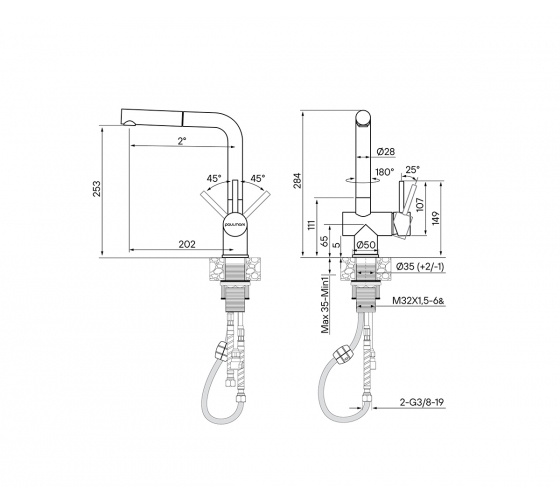 Смеситель для кухни Dosse Do214418-418 с вытяжным шлангом. Изготовлен из высококачественной и экологически чистой нержавеющей стали AISI 304, легированной никелем, марганцем, медью и хромом, что обеспечивает ей повышенную прочность и устойчивость в коррозионных средах. Удобство использования обеспечиваетвысокий и поворотный излив, раположенный на высоте 26 см от уровня сиолешницы, а так же вытяжной шланг, значительно облегчающий процесс мойки посуды или продуктов любого размера и формы. Комплектация включает в себя запасной пластиковый аэратор, а так же комплект гибкой подводки длинной 60 см, крепление с облегченной установкой (гайка на втулке).