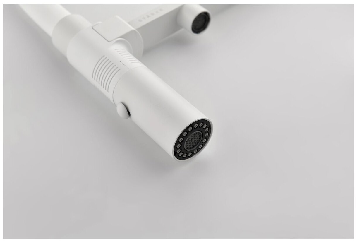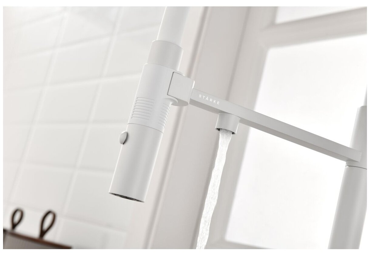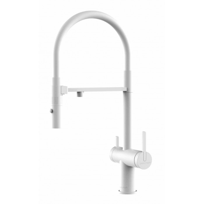 Смеситель для кухонной мойки Paulmark Gravity Gr213188-401 со съёмным гибким шлангом и функцией 2 в 1, позволяющей подключить к смесителю фильтр очистки воды. Прекрасное соотношение фунциональности и стиля. Отдельный канал для фильтрованной воды - нет смешивания с водопроводной водой. Практичность смесителя 2-в-1 - это не надо делать дополнительное отверстие для подачи фильтрованной воды. Шланг выполнен из силикона. При наборе воды в крупногабаритные предметы шланг снимается с магнитного держателя. Переключение струя/душ (работает только при подаче напора воды, вхолостую не работает). Для установки смесителя требуется отверстие диаметром 35 мм. Корпус смесителя выполнен из высококачественной латуни. Надежный керамический картридж.