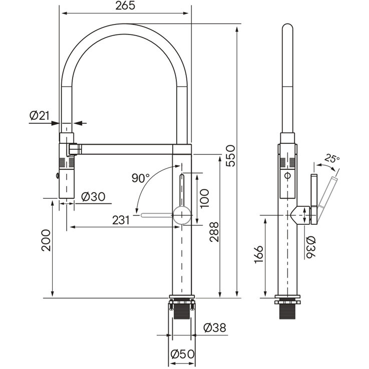 Смеситель для кухни LEADER в цвете "золото". Изготовлен из высококачественной латуни, которая отвечает высочайшим европейским стандартам качества, не содержит свинца, не разрушается со временем и безопасна для здоровья. Смеситель имеет два режима подачи воды: мощная струя и деликатный душ. Гибкий излив из силикона, способный на вращение 360 градусов обеспечивает оптимальный диапазон движения и удобство использования. Крепление гибкого излива с помощью магнитного держателя обеспечивает надёжную фиксацию. Современная форма идеальна для создания уникального дизайна вашей кухни. Гарантия на смесители Paulmark 5 лет.