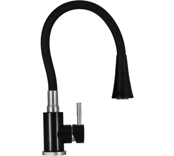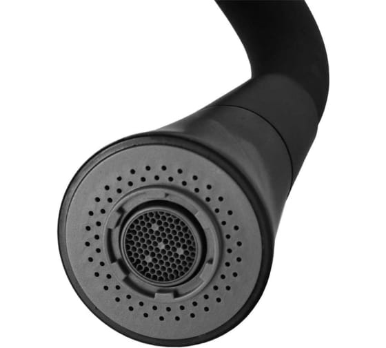Оригинальный, невероятно удобный и долговечный смеситель. Корпус изготовлен из высококачественной нержавеющей стали c покрытием из искусственного гранита. Излив у этой модели высокий, гибкий и с поворотным механизмом, поэтому функциональность очень хорошая. Излив сделан из износостойкого силикона, который применяется в пищевой промышленности, поэтому полностью безопасен для человека. Материал выдерживает высокие и низкие температуры и легко чистится от загрязнений. Душевая насадка позволит в считанные секунды помыть овощи и фрукты, а также за счет воздуха увеличивает напор и экономит воду. Длина излива в распрямленном виде 550мм