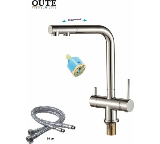 Смеситель для кухонной мойки OUTE с отдельным выходом под фильтр T610003B с вытяжным изливом, изготовлен из качественной латуни, которая обладает высокой устойчивостью к коррозии.