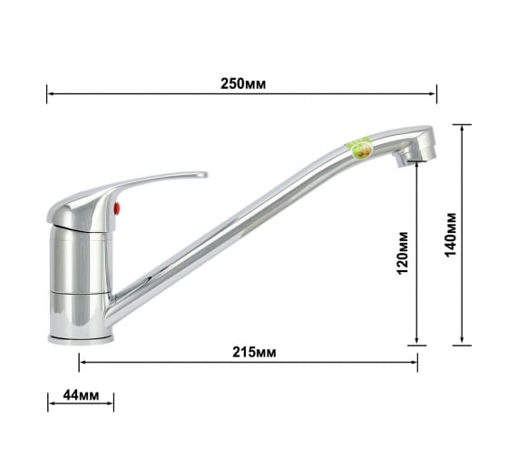Данная модель представляет собой надежный и современный смеситель с горизонтальным способом установки, устанавливается на мойку или столешницу, максимальная толщина которой 35 мм. Тип крепления – шпилька. Смеситель имеет поворотный высокий излив (гусак), длина которого 215 мм, эко-сеточка аэратора выполнена из долговечного ABS-пластика, насыщает воду кислородом, и позволяет уменьшить ее расход.