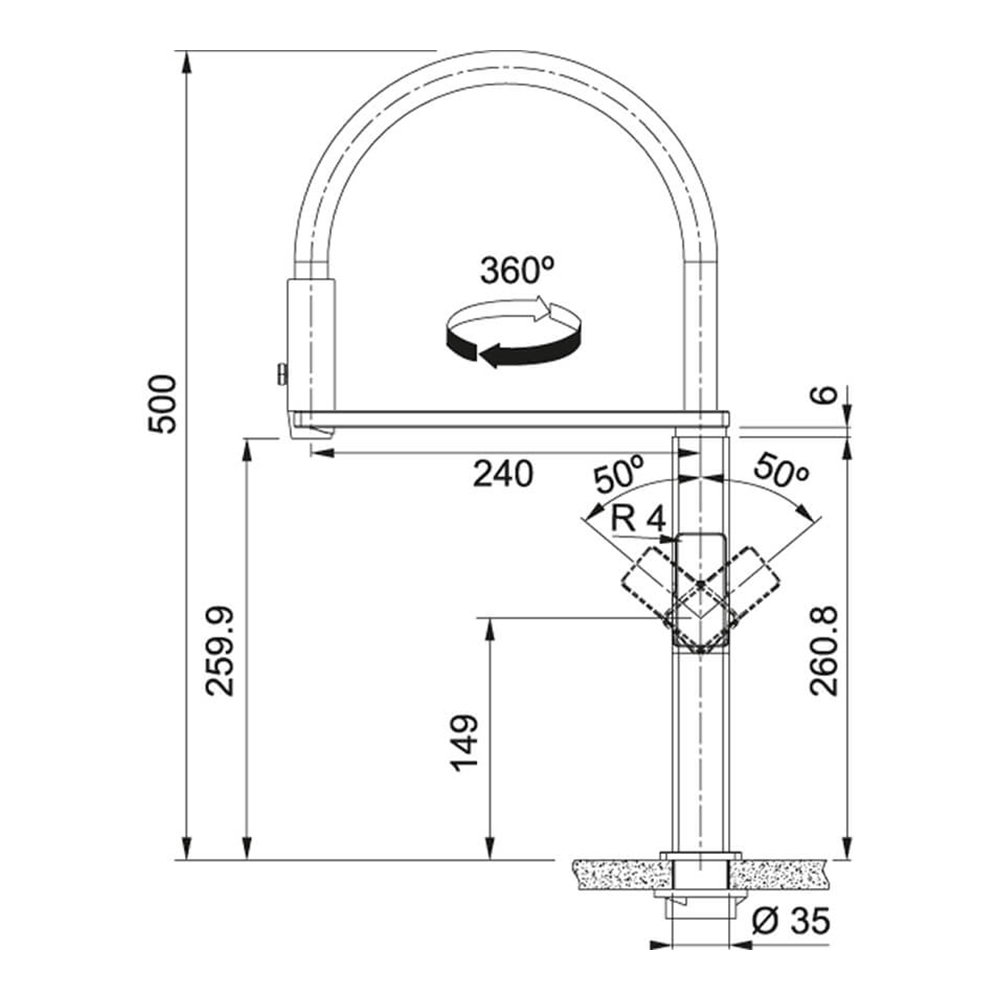 Смеситель для кухни поворотным (360°) и выдвижным излов