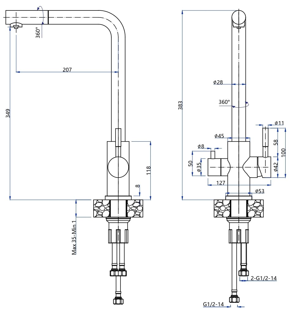 Смеситель Z-5421 изготовлен из нержавеющей стали и прослужит Вам долгие годы. Стильный и надёжный вариант прекрасно впишется в интерьер любой современной кухни. Смеситель оснащен: - краном с питьевой водой; - керамическим картриджем, диаметром 35 мм; - гибкой подводкой на 60см. Вращение излива позволит Вам удобно располагать его во время мойки посуды. в излив смесителя уже установлен аэратор, это экономит воду во время мытья, и сохраняет тишину.
