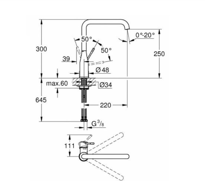Монтаж на одно отверстие.GROHE StarLight покрытие поверхности.