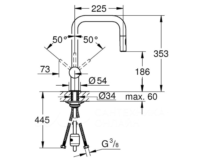 Оснащение: аэратор / гибкая подводка / система быстрого монтажа