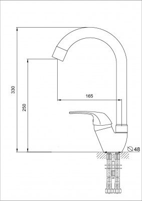 Смеситель Караван 331-06/65 для кухни с подводкой 40 см. камень светло-серый
