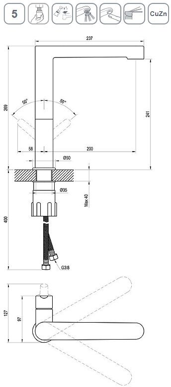 Для комплексного решения и согласованности дизайна ванной комнаты рекомендуется комбинировать с другими смесителями серии Puri black. Для внешней очистки рекомендуется использовать RAVAK Cleaner Chrome.