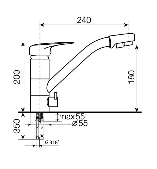 Длина излива (мм): 240