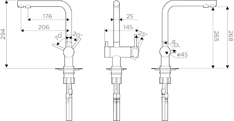 Угол поворота излива 360°