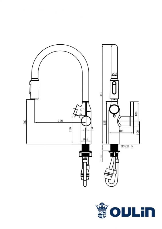 Длина излива 220 мм