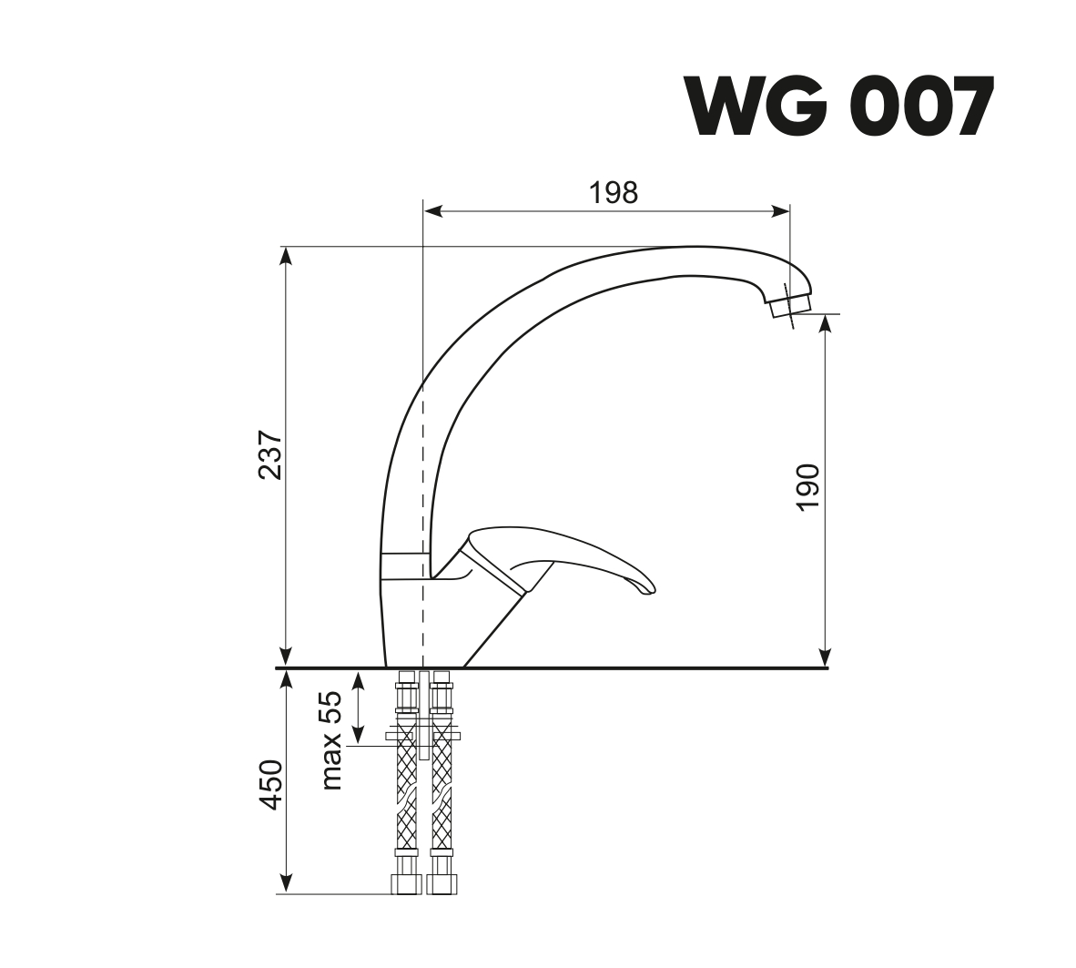 Установка: вертикальная, на мойку