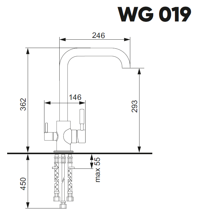 Комплектация: гибкая подводка, комплект креплений, переходник для подключения фильтра с питьевой водой