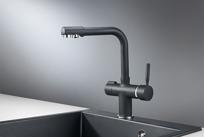 Исполнение излива: монолитный, поворотный, с подключением к фильтру для питьевой воды