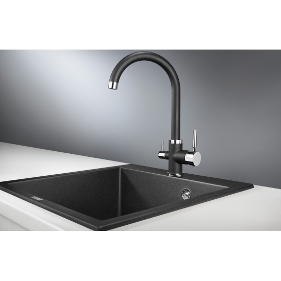 система подачи питьевой воды активируется при помощи второго рычага, реализована благодаря подаче фильтрованной воды через отдельную трубку