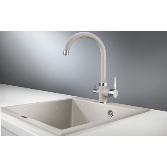 система подачи питьевой воды активируется при помощи второго рычага, реализована благодаря подаче фильтрованной воды через отдельную трубку