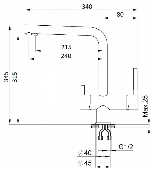 Исполнение излива: монолитный, поворотный, с подключением к фильтру для питьевой воды