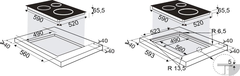 Отделка: Закругленные края в задней части (R5) и в передней (R12)