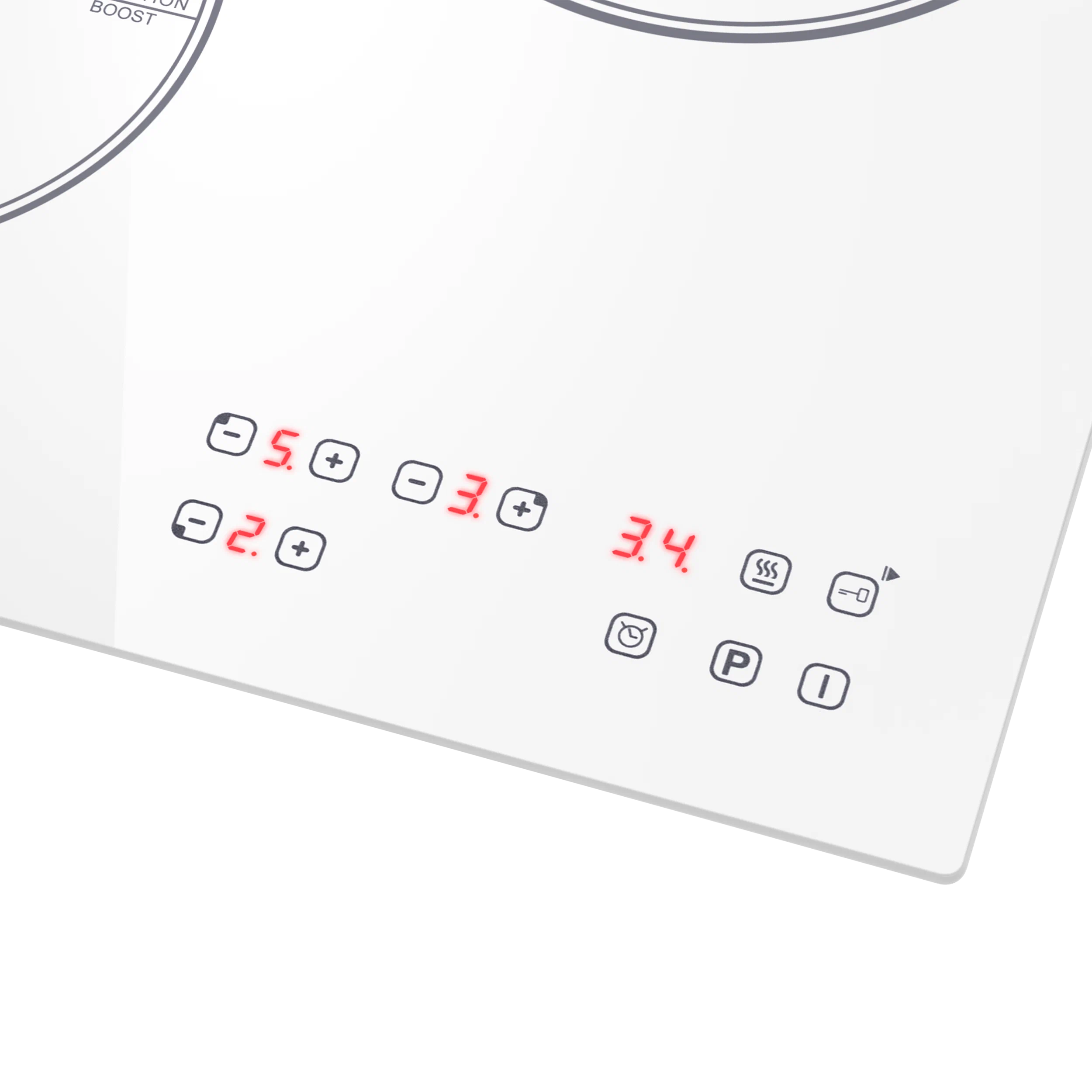 Booster, автоматика закипания, поддержание тепла, распознавание наличия посуды, распознавание размера посуды, таймер