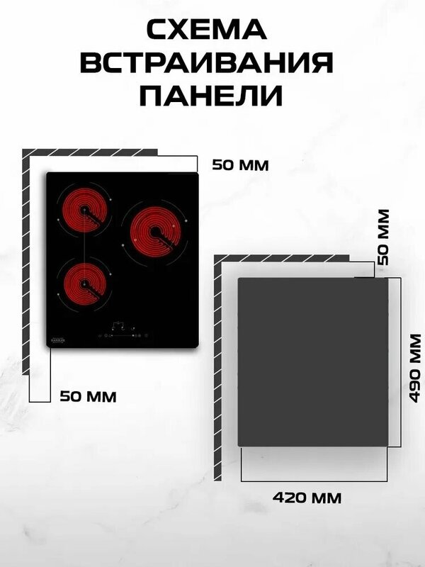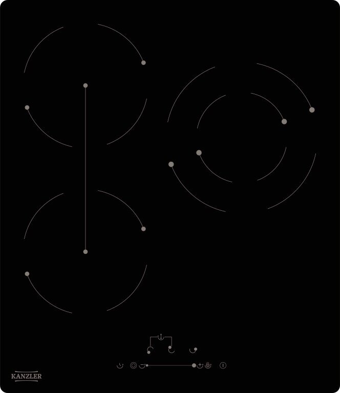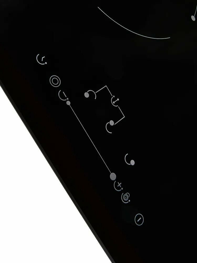защитное отключение конфорок, индикатор остаточного тепла, кнопка блокировки панели