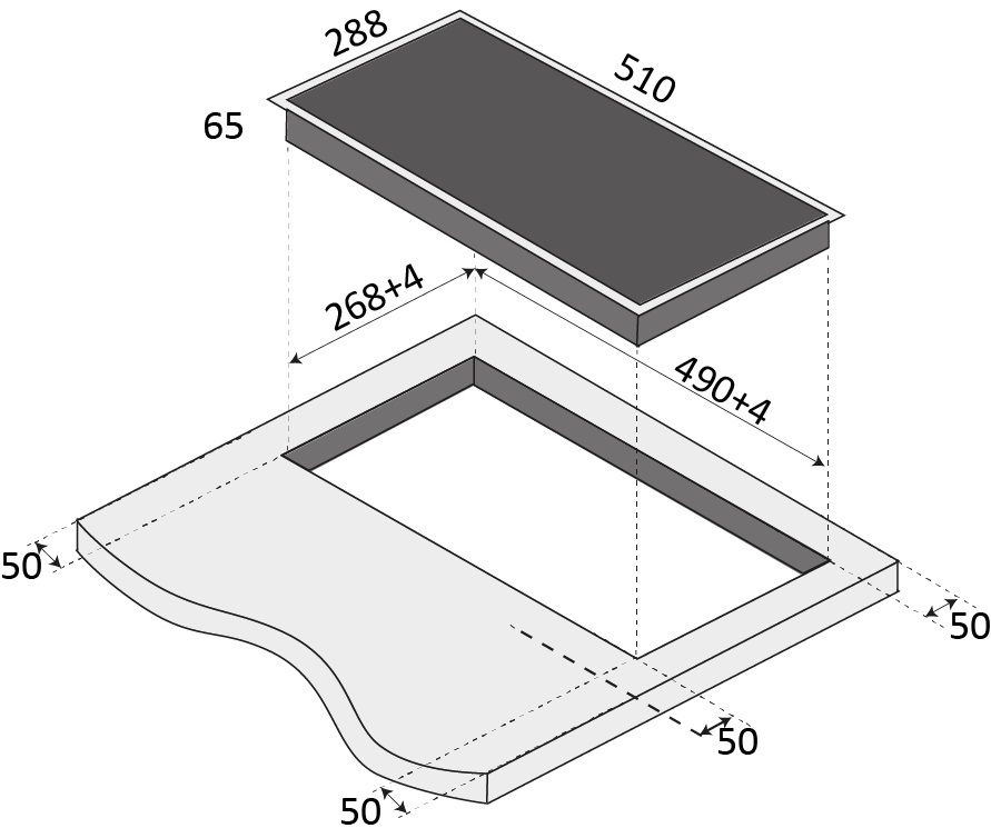 Размеры ниши для встраивания ВxШxГ (мм)268x490