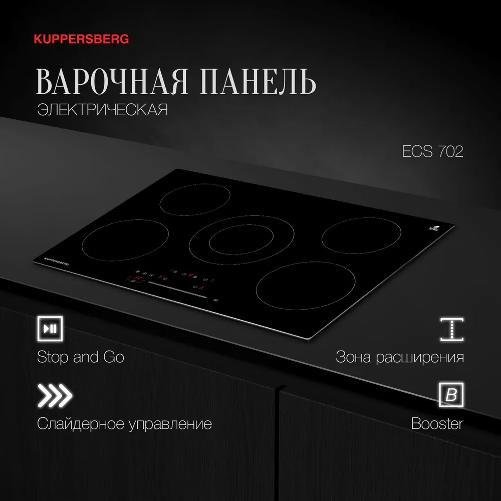 Особенности варочной панели: Быстрый нагрев, Пауза в приготовлении, Расширение зоны нагрева