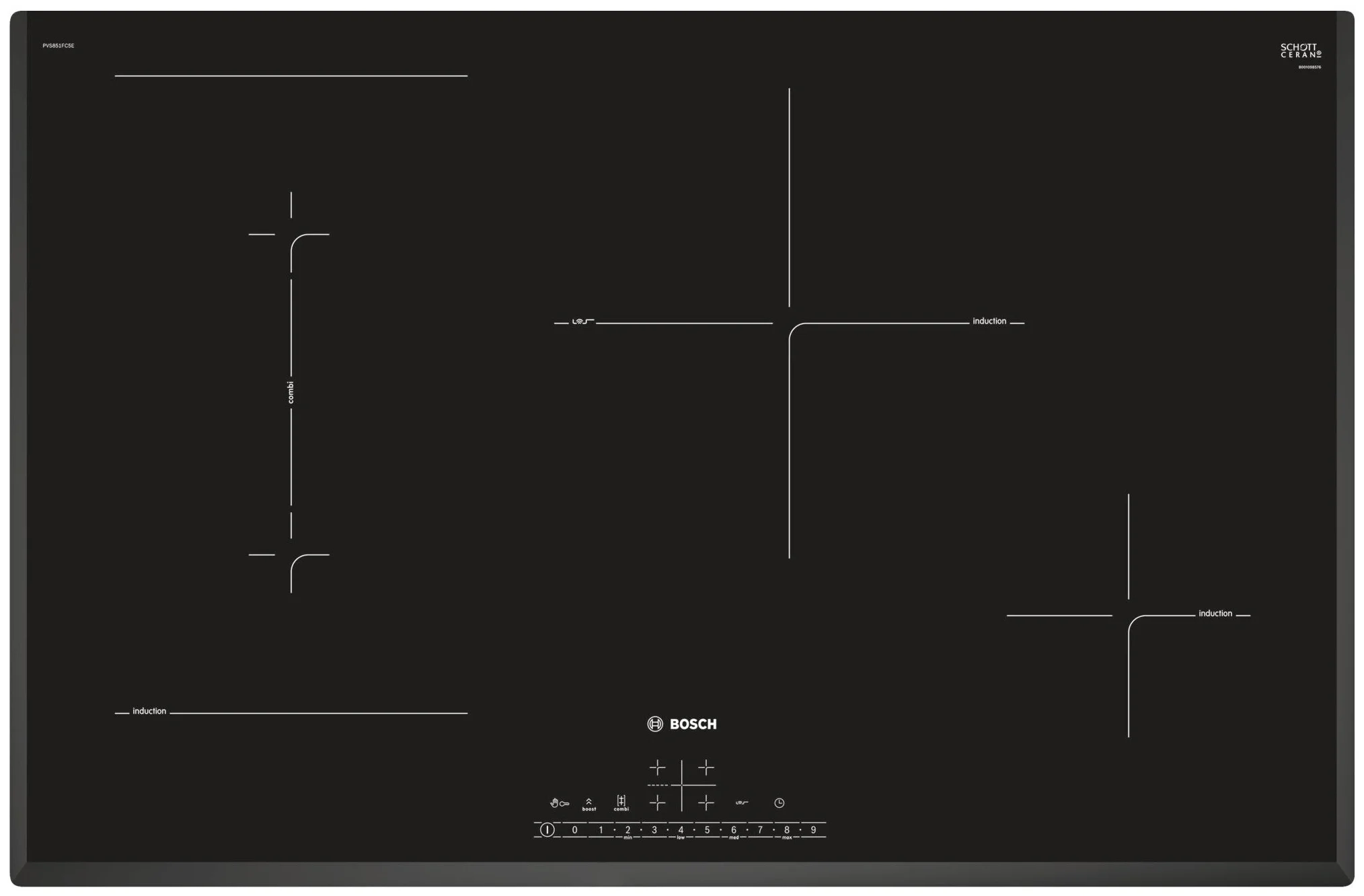 конфорка диаметром 14,5 см, конфорка диаметром 28 см, зона нагрева CombiZone 21 x 38 см