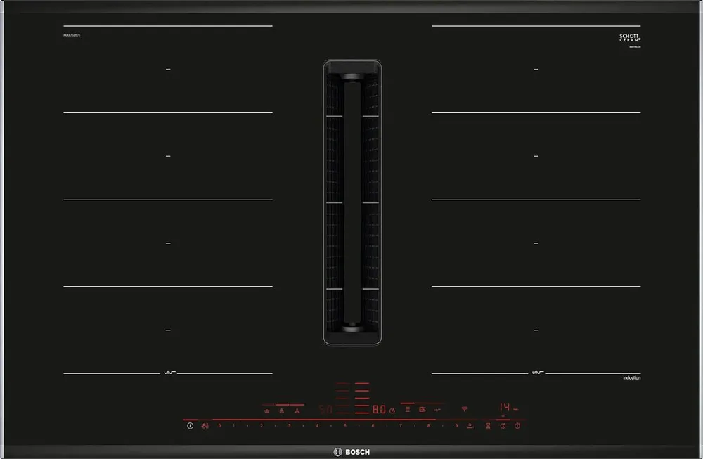 Особенности варочной панели: Быстрый нагрев, Встроенная вытяжка, Пауза в приготовлении, Расширение зоны нагрева, Сенсор наличия посуды