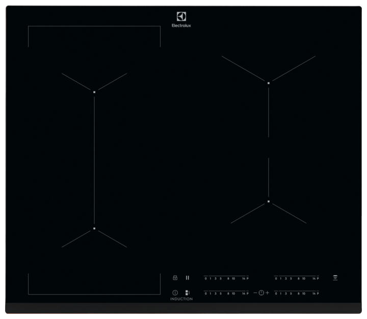 защитное отключение конфорок, индикатор остаточного тепла, кнопка блокировки панели