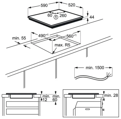 - Мощность задней правой конфорки: 1800/2800 Вт
