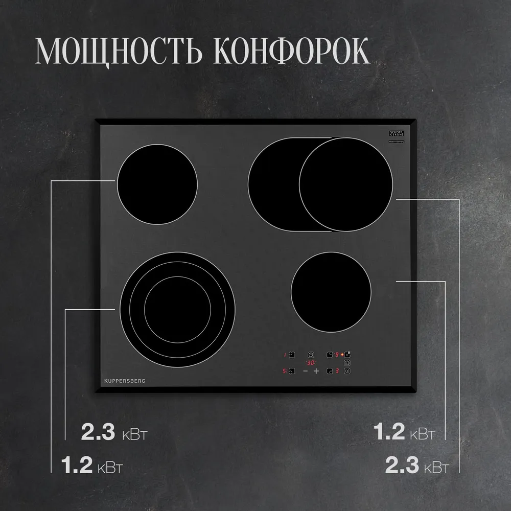 Особенности варочной панели: Автоматика закипания, Быстрый нагрев, Расширение зоны нагрева