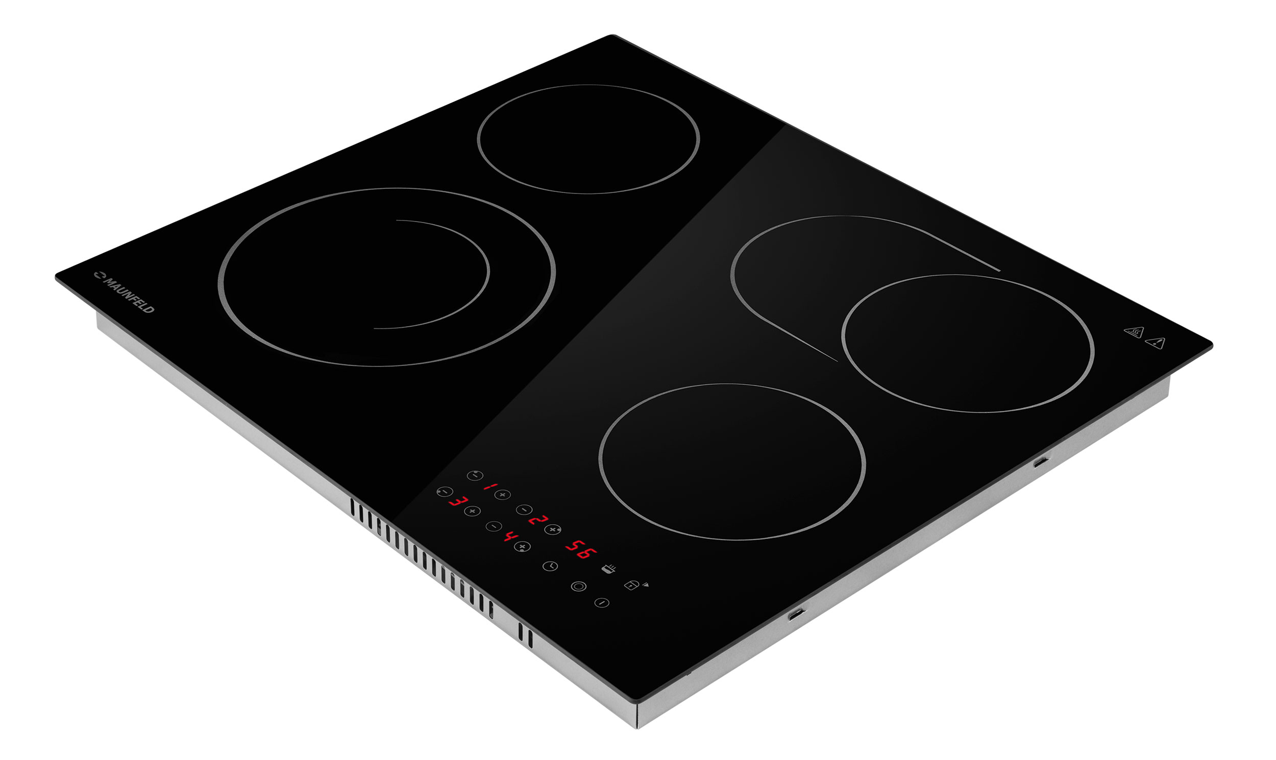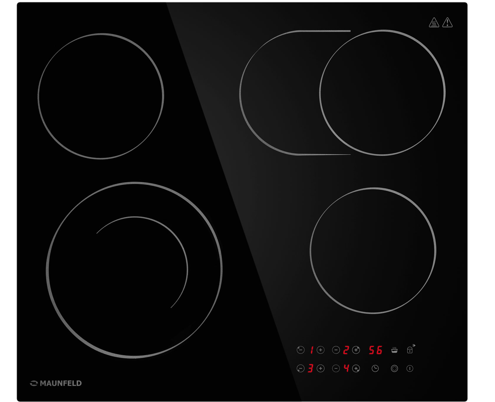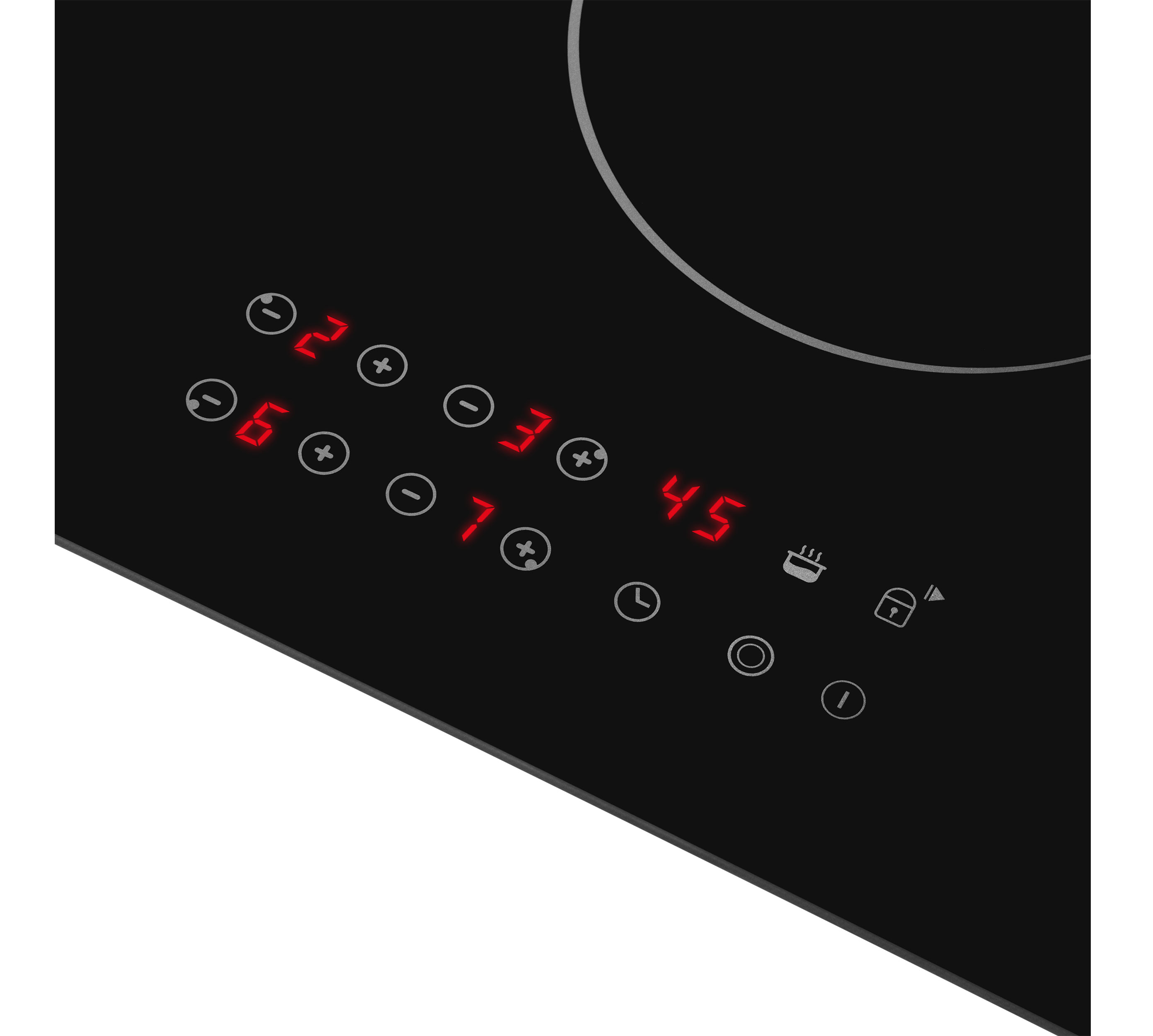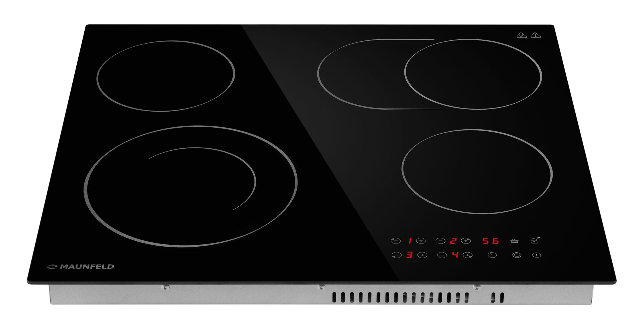 защитное отключение конфорок, индикатор остаточного тепла, кнопка блокировки панели