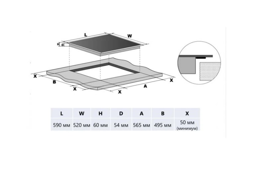 автоматическое отключение в случае перегрева, долгого простоя работающей конфорки и при намокании поверхности варочной панели.