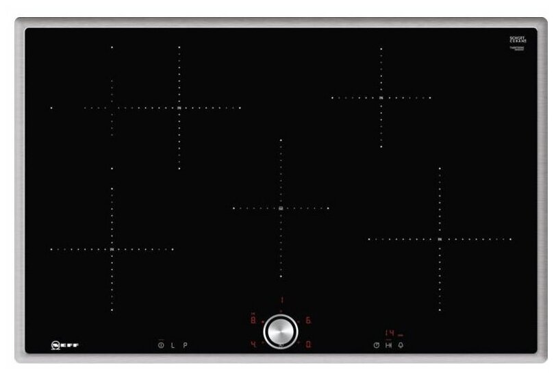 защитное отключение конфорок, индикатор остаточного тепла, кнопка блокировки панели