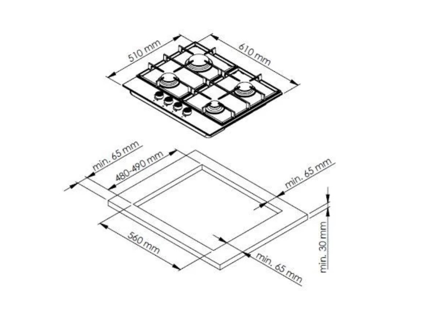 • Варочная панель имеет стандартную ширину 60 см!