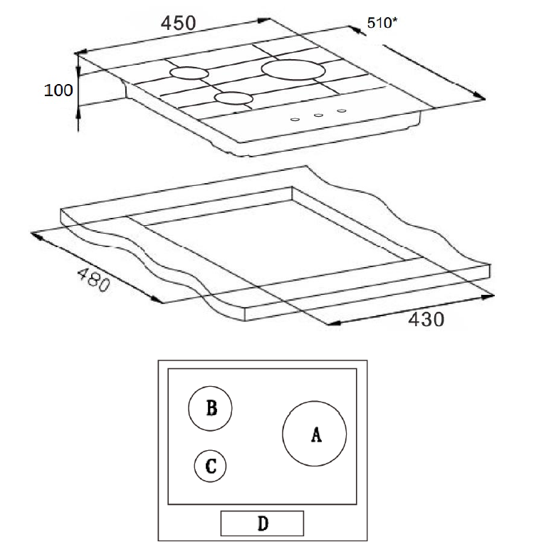 Мощность конфорок: 1*3,4 (тройной контур)/1*1,8/1*1,0 кВт