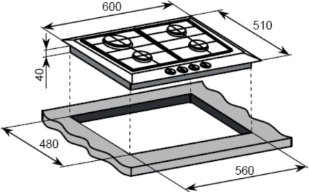 Мощность конфорок: 1*3,4(двойной контур) 2*1,8(средняя) 1*1,0(маленькая)