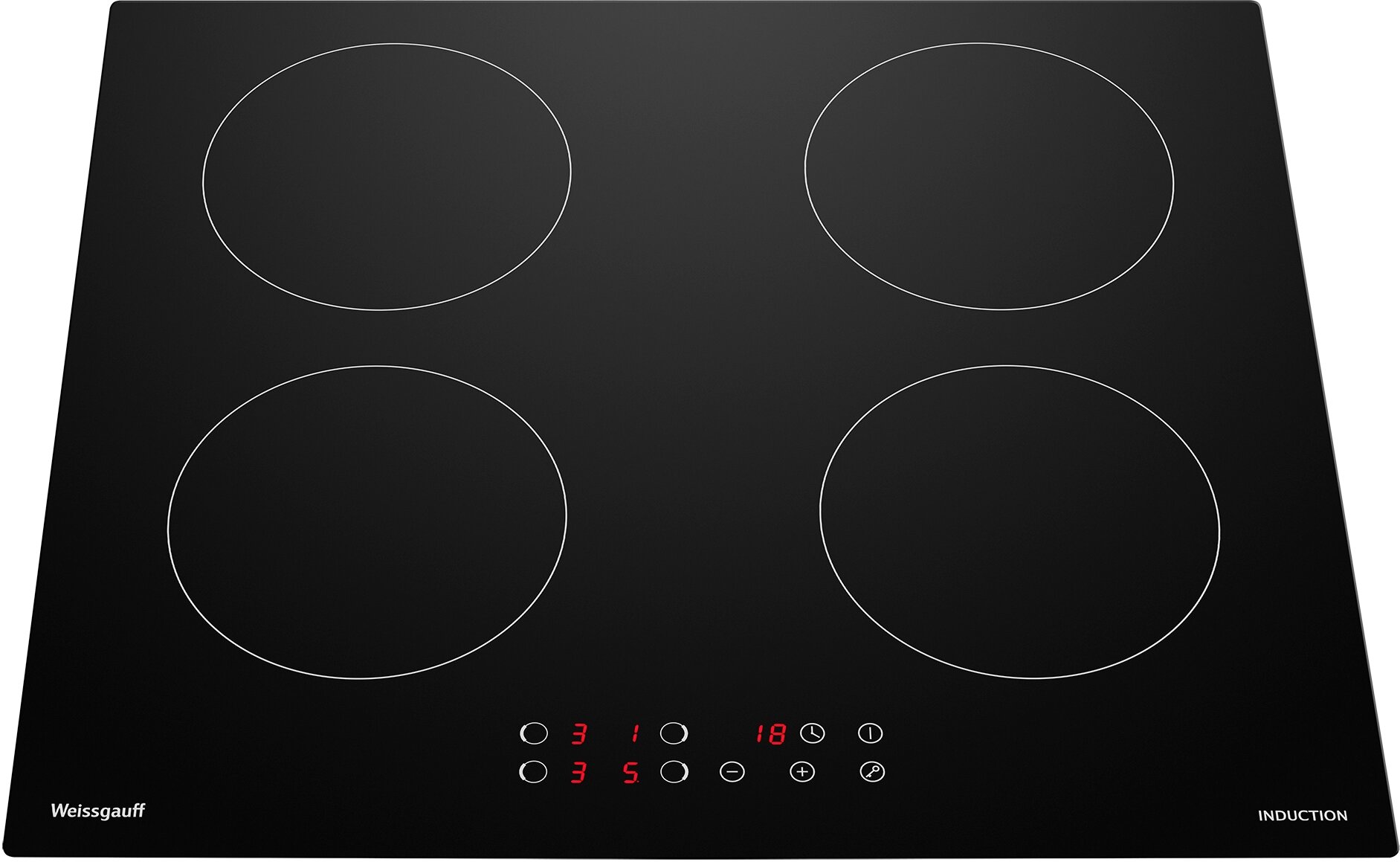 защитное отключение конфорок, индикатор остаточного тепла, кнопка блокировки панели