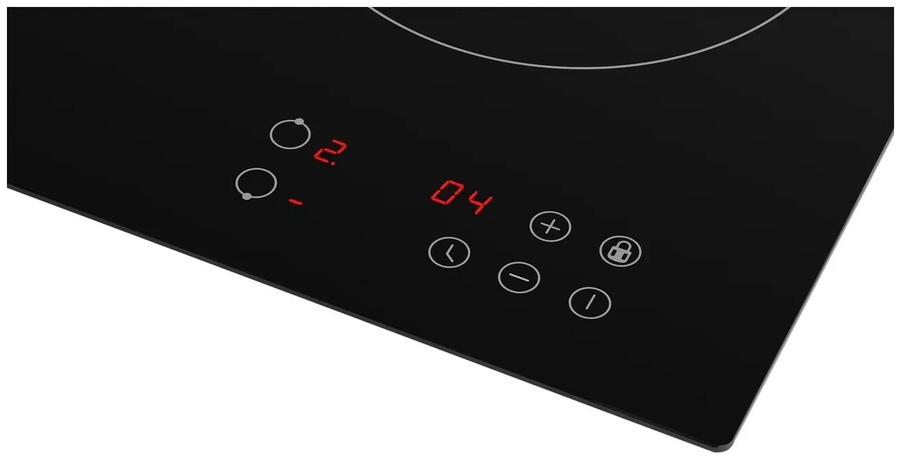 защитное отключение конфорок, кнопка блокировки панели, индикатор остаточного тепла