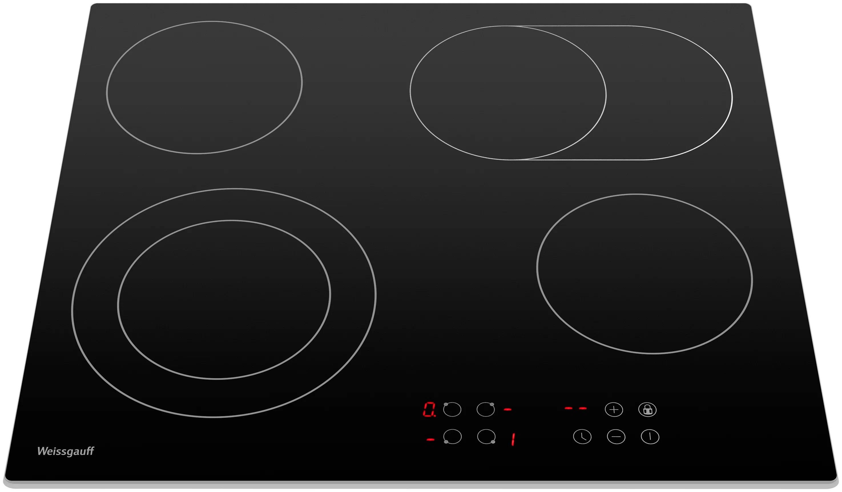 защитное отключение конфорок, индикатор остаточного тепла, кнопка блокировки панели