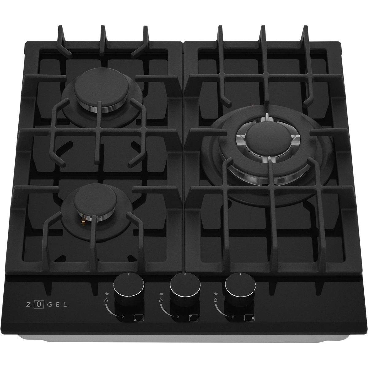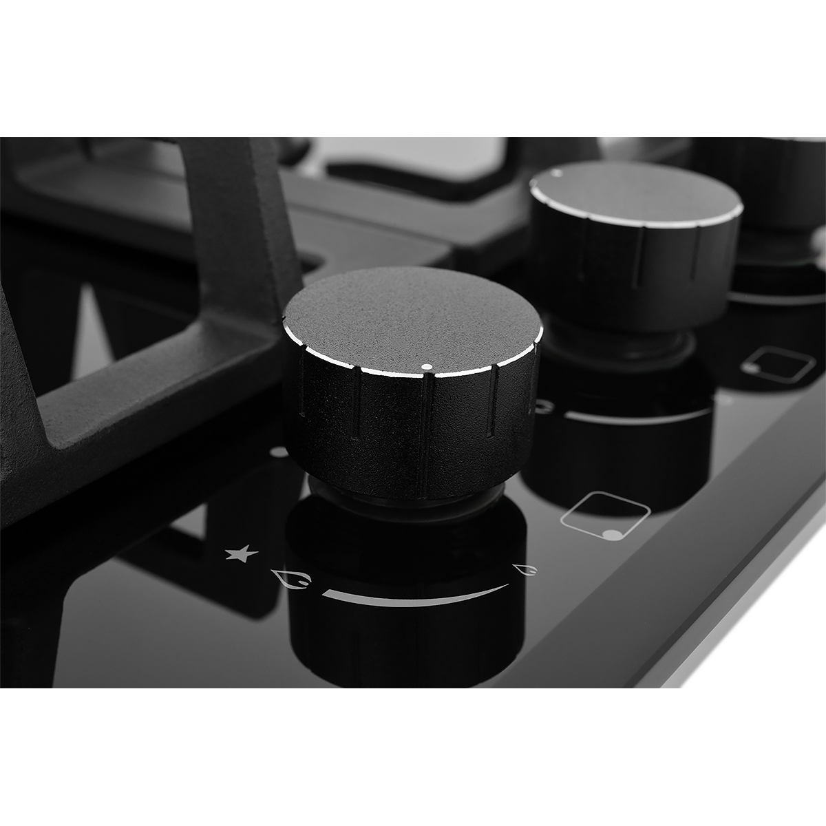 Мощная WOK-конфорка с 2 рассекателями и тройным контуром огня, Металлические дизайнерские ручки, Технология "газ на стекле", Форсунки для конверсии(природный/сжиженный) газа в комплекте