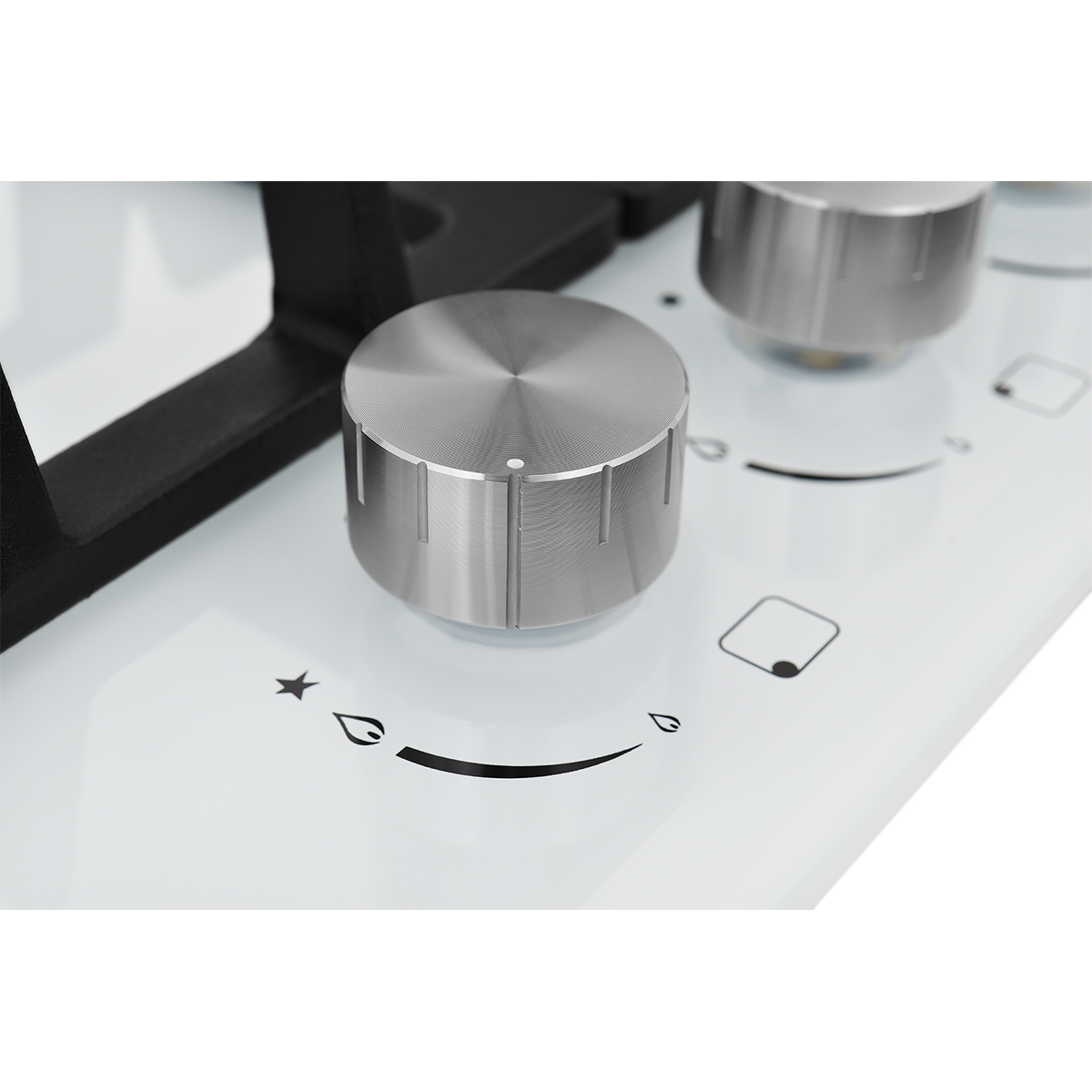 Мощная WOK-конфорка с 2 рассекателями и тройным контуром огня, Металлические дизайнерские ручки, Технология "газ на стекле", Форсунки для конверсии(природный/сжиженный) газа в комплекте