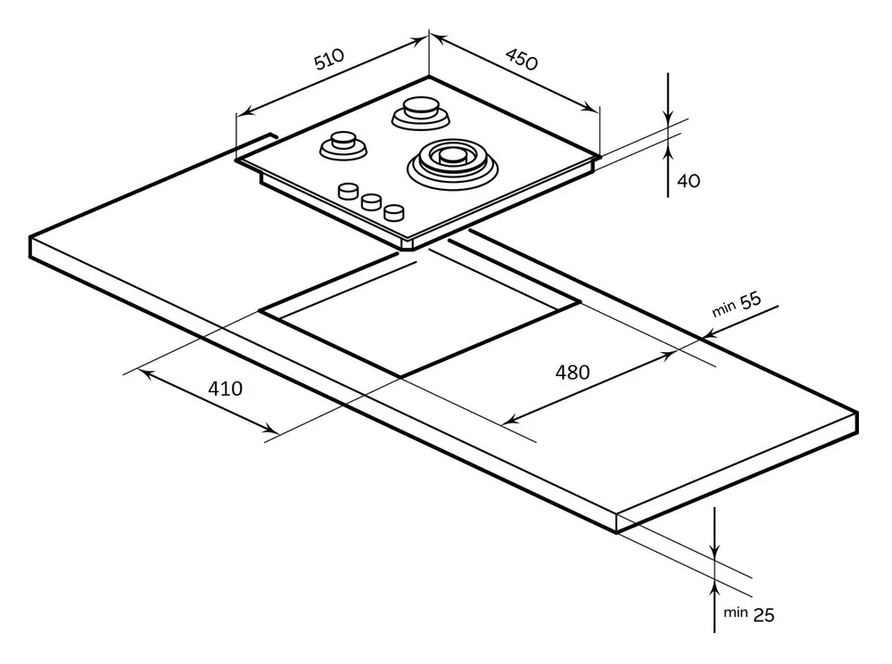 Размер для встраивания (В*Ш*Г) (мм) 30х410х480