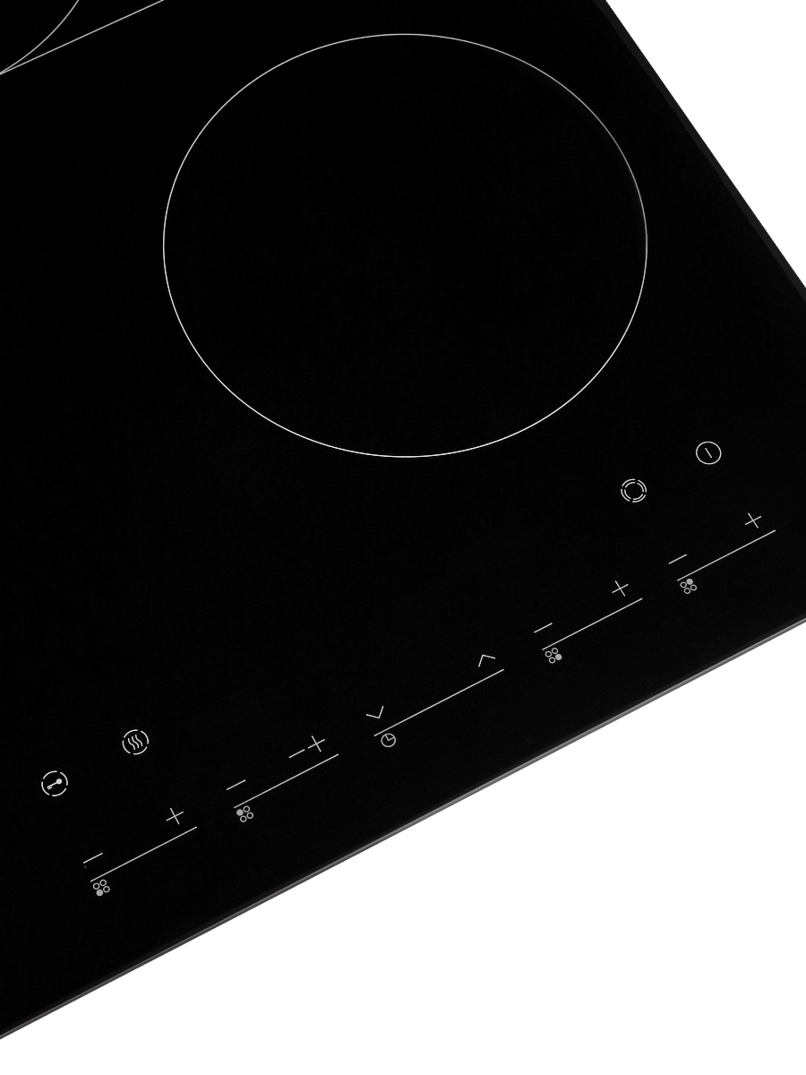 защитное отключение конфорок, индикатор остаточного тепла, кнопка блокировки панели